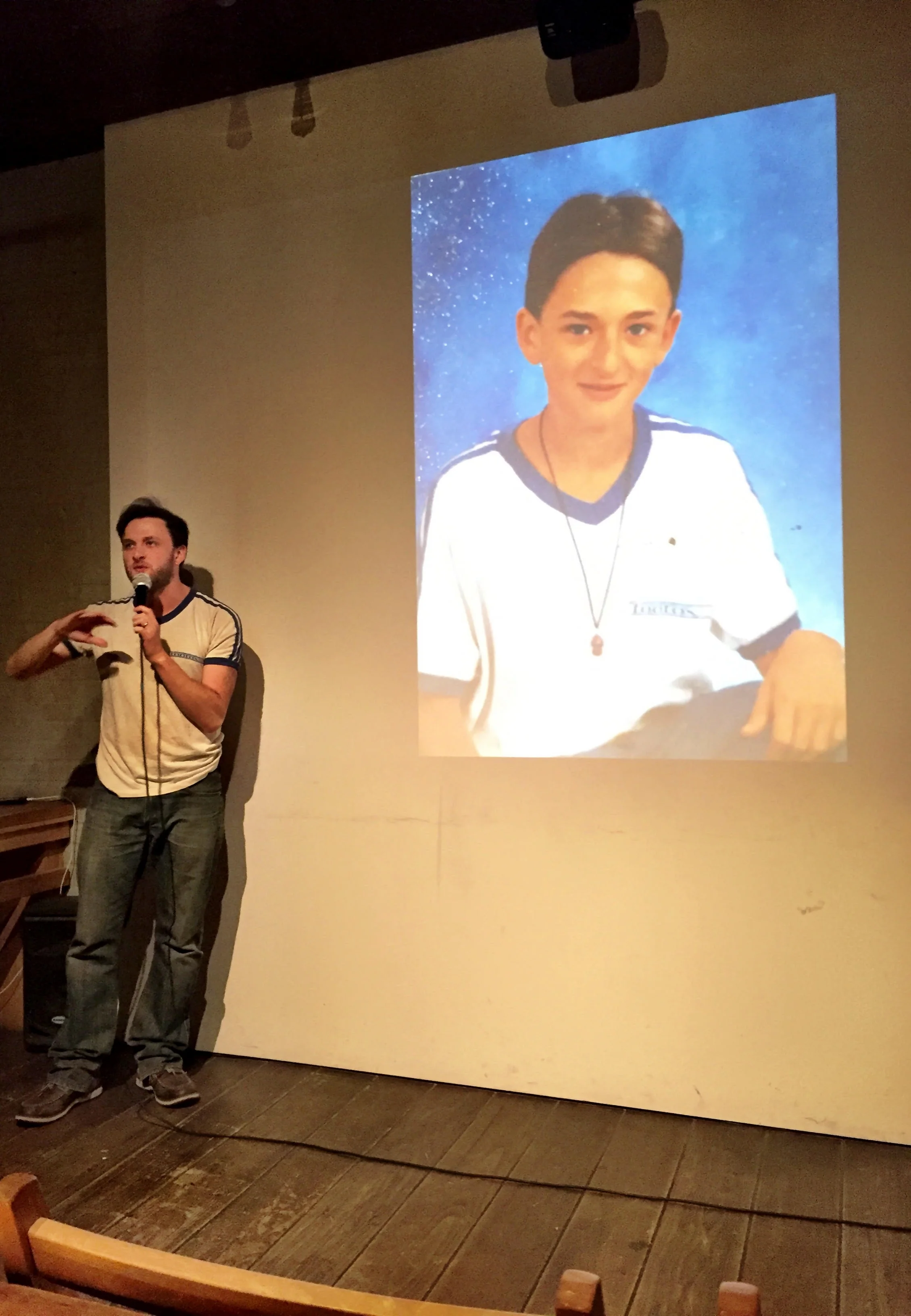 Aforementioned friend and brilliant actor buddy Joy Donze's amazing one woman show is among two that are heading to the Edinburgh Fringe Festival, and so spawned this crowdfunding event at one hell of a space out in Bushwick called Tilt. Being that Joy's show, "13 & Not Pregnant," is literally taken from her middle school journal, it seemed appropriate that one of the entertainment offerings for this evening is an hour of "Journal Confessions." I'll be one of the readers for that portion, and as everyone else will be doing in some capacity, I will be dressed up like my 8th grade self. This won't be hard since my wardrobe has changed very little over the past 20 years.