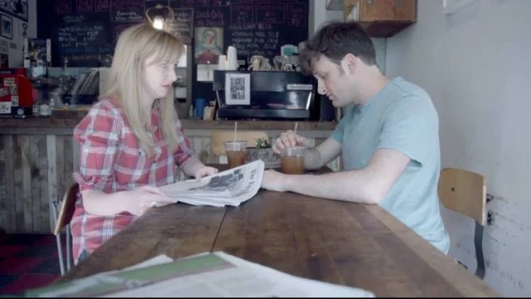 Just caught a glimpse of a student film I worked on through SUNY Purchase--- my first time working with students from there. The production went so smoothly this past winter. The entire cast and crew provided such a relaxing atmosphere, which was very much appreciated. The film was called "Brief Glimpses at Strangers," and I filmed a vignette for it, the last of three separate ones. Here is a still from the final scene.